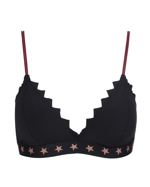 Featuring maroon color dual strap with main body in cool black, and the little starts along the lining add in a little cuteness to this piece!