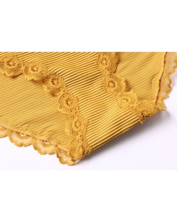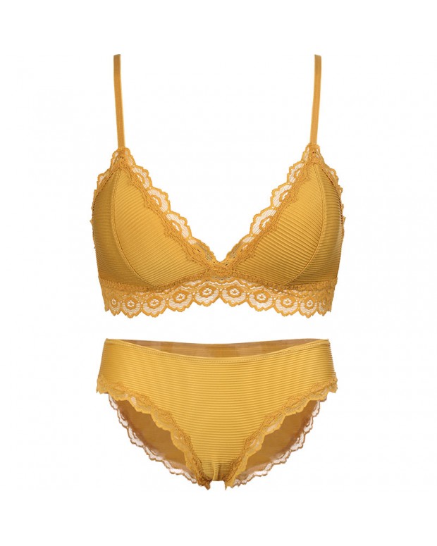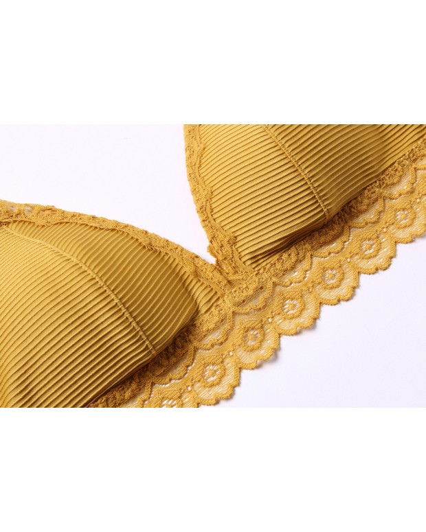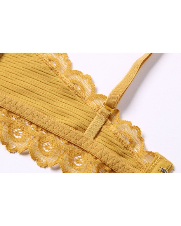 Soft lace scallop edges, featuring adequate support with its ultimate comfort, and it's in this cute mustard yellow shade!